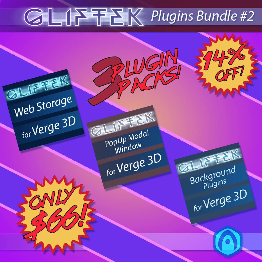 This Plugin Bundle contains three custom made Plugin Packs for use with Soft8Soft's WebGL visual coding package "Verge 3D".